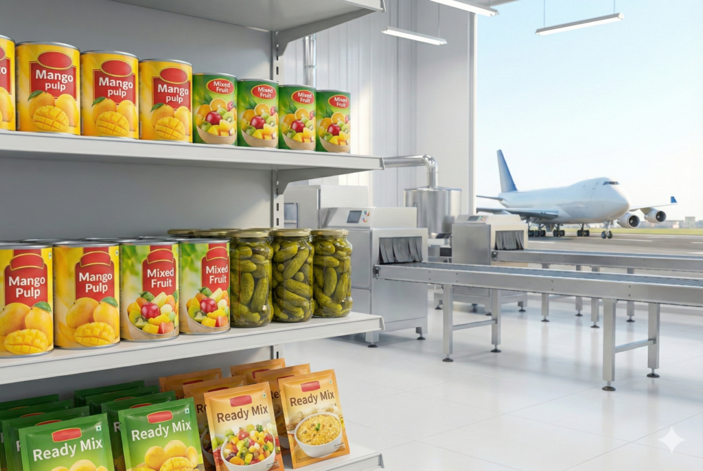 We supply a wide range of high-quality processed and canned foods, including fruit pulps, purees, pickles, ready-to-eat items, spice mixes, and more. All products are manufactured in certified facilities and packed to meet strict international export standards.